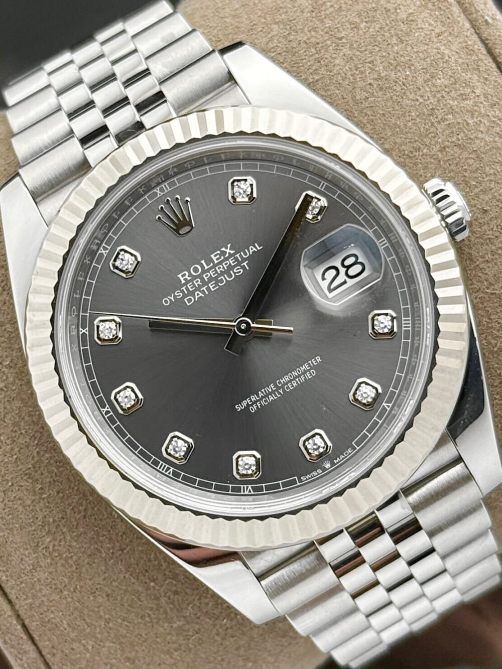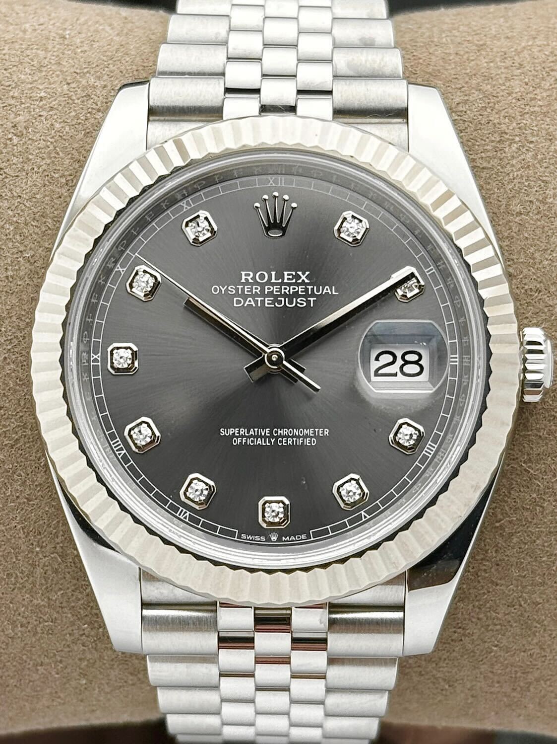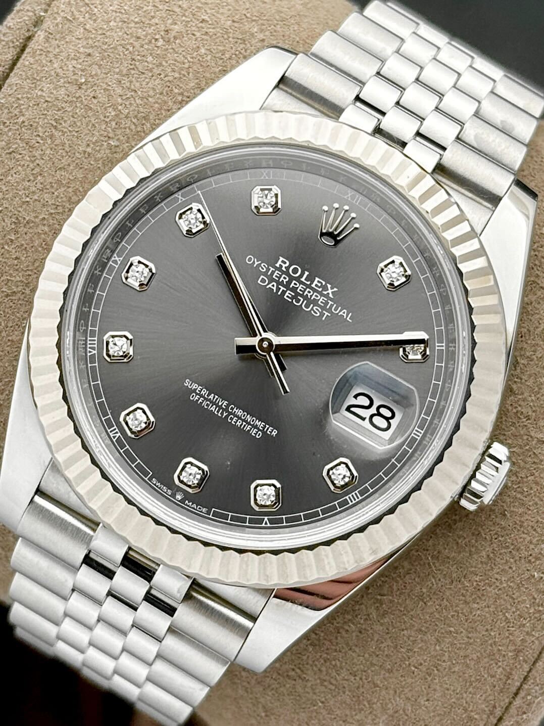 YOU’re ENQUIRING ABOUT: Rolex Datejust 41 Rhodium Grey Diamond Dial Fluted Jubilee Stainless Steel 126334 | 2023 | 41mm